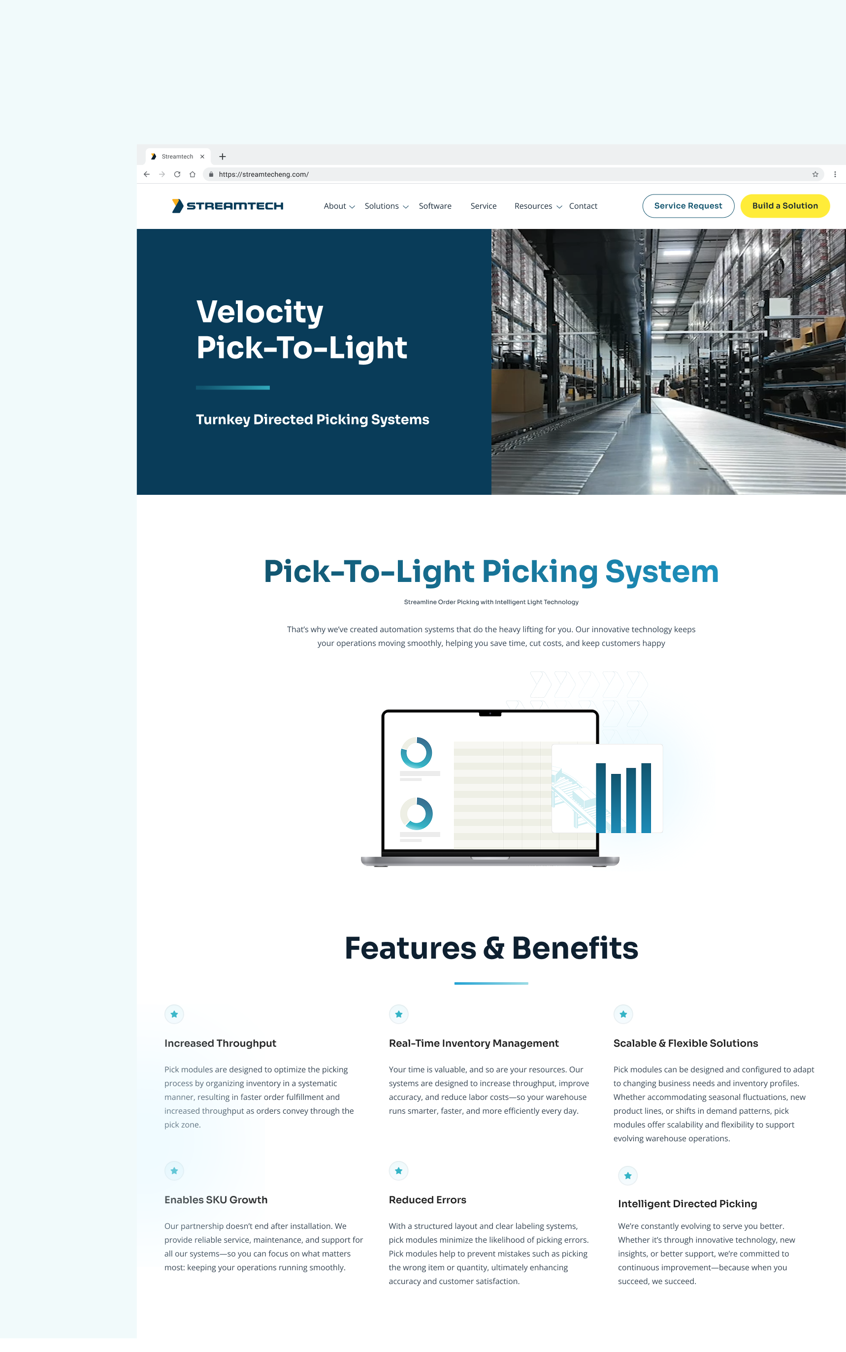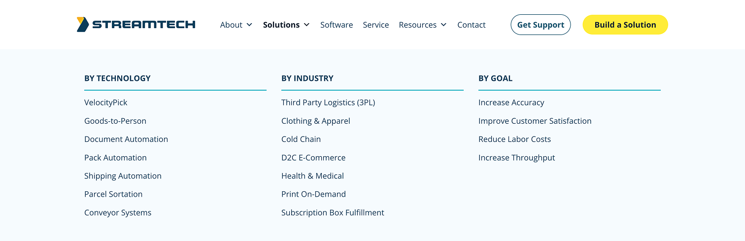 Our content team decided to organize StreamTech’s solutions into three categories: Technology, Industry, and Goal. This configuration leads all different kinds of users to the information they need, no matter what angle they are coming from. We then produced a clean, easy-to-read design to further ensure ease of use.